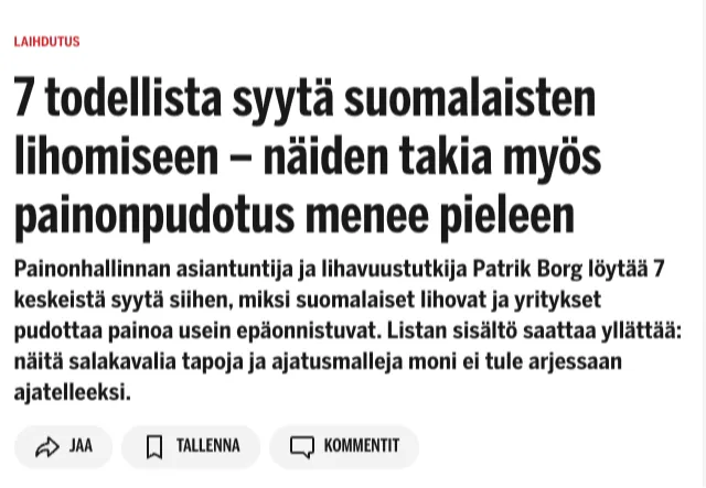 ❌ Uskot, että painonhallinnan haasteet johtuvat saamattomuudestasi.